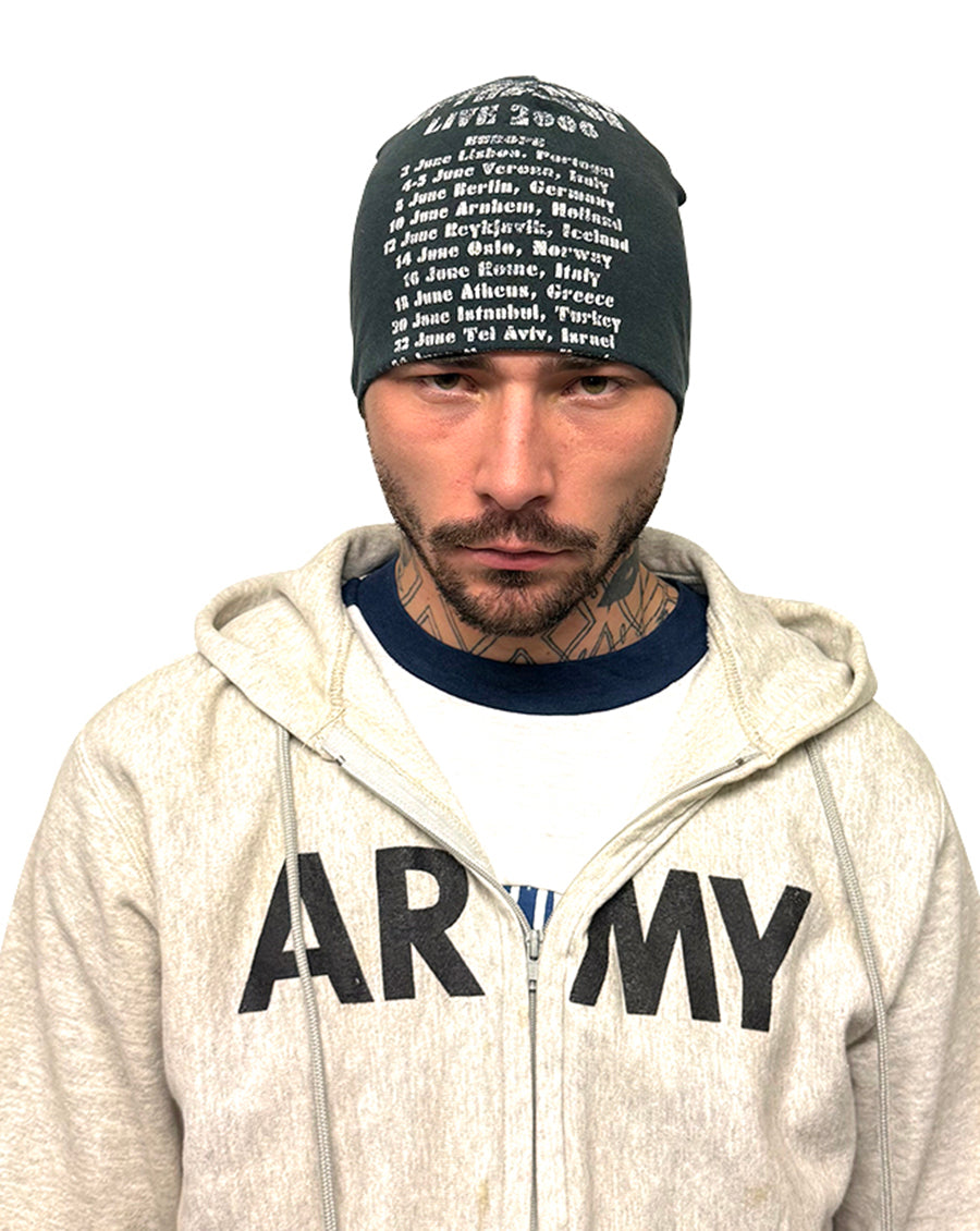 The T-Skully. A symbol of the ethos of the brand, JOSHUA JAMAL. The T-Skully is made from reconstituted vintage t-shirts, making each cap an entirely one-of-a-kind piece. All orders ship out within 1-2 weeks.