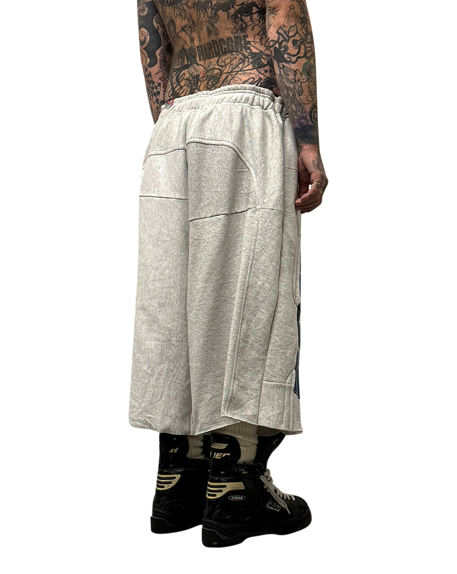 The Wave Padded sweat-short. A symbol of the ethos of the brand, JOSHUA JAMAL. The Wave Padded sweat short is made from reconstituted vintage sweatshirts, making each short an entirely one-of-a-kind piece. All orders ship out within 1-2 weeks.