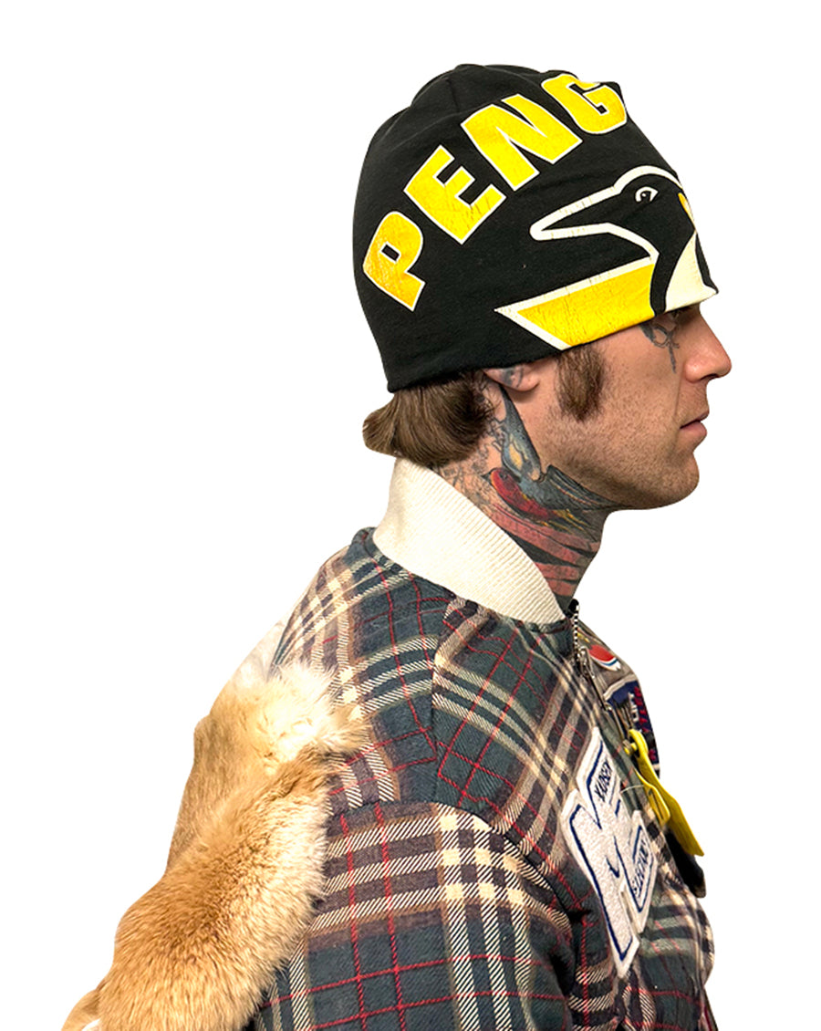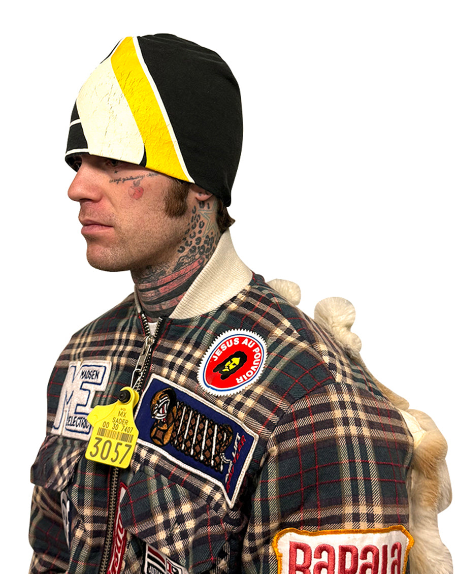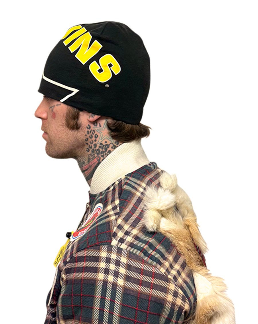 The T-Skully. A symbol of the ethos of the brand, JOSHUA JAMAL. The T-Skully is a reversible piece made from reconstituted vintage t-shirts, making each cap an entirely one-of-a-kind piece. All orders ship out within 1-2 weeks.