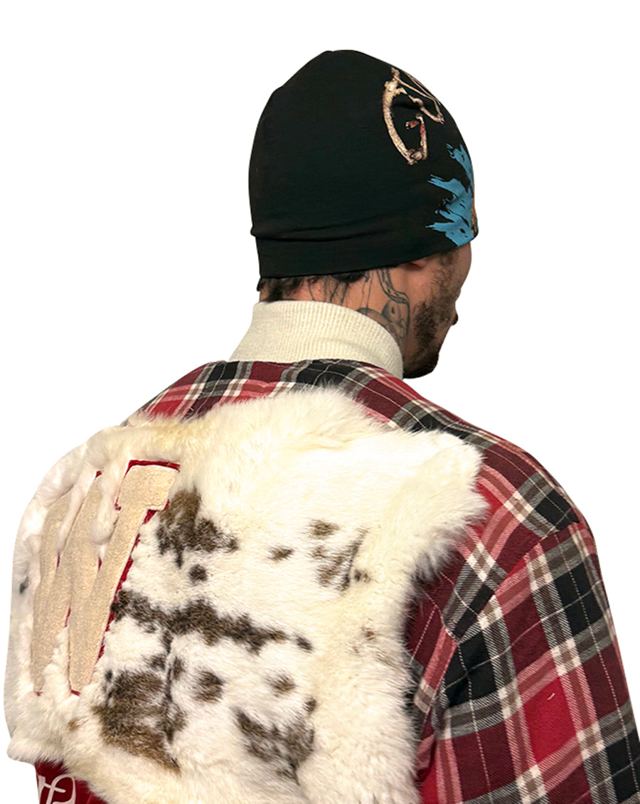 The T-Skully. A symbol of the ethos of the brand, JOSHUA JAMAL. The T-Skully is made from reconstituted vintage t-shirts, making each cap an entirely one-of-a-kind piece. All orders ship out within 1-2 weeks.